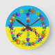 Relógio Redondo Sinal de paz com flores, botão ucrânia de bandeira