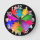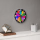 Este relógio de parede tem uma design moderna do século médio de uma coroa formada por estrelas em tons de vermelho, laranja, amarelo, verde, azul e roxo.