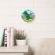 This dinosaur design wall clock is a timekeeping device designed to hang on a wall, serving as both a functional tool and a decorative focal point for a room. Made from acrylic and features a pre-installed backside hanging slot for easy hanging and a non-ticking design. You can customise this wall clock with any text of your choice. Should you require any help with customising then contact us through the link on this page. T-Rex Dinosaur design wall clock