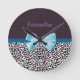 Relógio Redondo Tendência Leopard Impressão e Faixa Azul com Nome