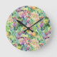Relógio Redondo Teste padrão de florescência exótico dos cactos da