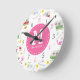 Relógio Redondo Teste padrão retro do reboque & dos flamingos