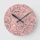 Relógio Redondo Teste padrão romântico com corações e pássaros