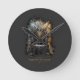 "A round acrylic wall clock featuring the dark 'Throne of Dust' design. An intricate clockwork throne made of gears, broken swords, and a glowing golden central mandala that aligns with the clock hands. Surrounded by faint occult symbols, black and gold grunge splatters, and the text 'THRONE OF DUST' at the bottom. Perfect for gothic home decor, heavy metal rooms, or industrial spaces."