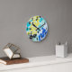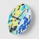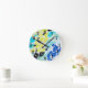 Impressão de leopardo divertida e vibrante. A cor é verde limão brilhante, azul, preto e turquesa. Trendy Glam Vibrante Aqua Azul Limão Azul Leopard Impressão Redonda Relógio