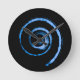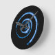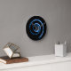 Relógio de parede com imagem abstrato de um giro azul em preto, na face do relógio. Personalizável.