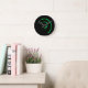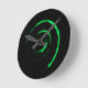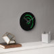 Relógio de parede com imagem abstrato de um fio verde em preto, na face do relógio. Personalizável.