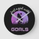 Só uma garota com objetivos. Este gráfico inspirador mostra uma ilustração dinâmica de uma garota jogando futebol, capturando sua determinação feroz e seu amor pelo jogo. O texto brincalhão destaca a mensagem: você é mais do que apenas um jogador — você é um sonhador, um jogador e um jogador.