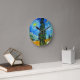 Clock featuring Vincent van Gogh’s oil painting Road with Cypress and Star (1890), also known as Country Road in Provence by Night. People walk along a road passing a beautiful cypress tree underneath a blue night sky with yellow moon and stars. A fantastic gift for fans of Post-Impressionism and Dutch art.