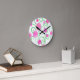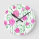Relógio Redondo Vinhas Verdes e Flores Rosa