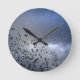 Pássaros voam através de um céu celeste azul em um relógio único. Este relógio seria ajustado bem numa celestial ou na natureza, temia a casa.