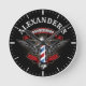Relógio Redondo Winged Barber Pole Logo Personalize