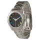 Uhr mit Ziffernblatt aus den Regenbogenfarben auf transparentem Untergrund.