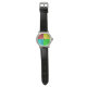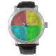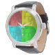 Retrato de Beethoven em quadrados vermelhos, amarelos, azuis e verdes. Imagem com efeito gravado aplicada ao design. Relógios personalizados. Ideia para os fãs do compositor de música erudita alemão.