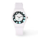 Personalize este relógio polka-dots estilo divertido e divertido moderno com um nome ou seu próprio texto dentro da borda circular de círculos azul-turquesa e gradientes brancos a preto. Esta imagem é uma fotografia original de JLW_PHOTOGRAPHY.