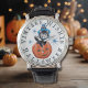 Este relógio único e divertido apresenta um gato preto com aspecto retrógrado sobre um velho jack-o-lanterno de abóbora com as palavras Vintage Halloween Deseja ao seu redor.