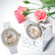 O presente perfeito para ela, brilhar e brilhar o relógio de pulso da Rhinestone feminina! Dê-lhe o dom real perfeito para o Dia do Namorados, para que ela possa enfeitar seu pulso com este relógio de pulso na moda brilhante e incrivelmente bonito. Com a face realçada de rocha, e bracelete de liga de esmalte branco, é a adição em moda que seu pulso perdeu! Um relógio personalizado com modelo de foto personalizado e texto, que ela vai tesourar para sempre. Este relógio único e elegante é uma peça de joias de manutenção do eterno, que você pode personalizar com suas próprias palavras e sua foto juntos, em um passo fácil. O rosto do relógio tem um texto com as palavras "Forever Love" escritas com uma bela e elegante letra, e é totalmente personalizável. Uma combinação de caligrafia e tipografia escrita sentimental. O design apresenta uma decoração de rosa vermelha acima das palavras com script. Este belo relógio elegante é uma peça de joias espantosa, mostra um olhar elegante, que ela irá apreciar para sempre, lembrando-lhe o seu amor e o seu tempo precioso juntos. É um presente romântico com uma declaração sentimental de "amor eterno", excelente para seu noivo, noiva, e para um casal. É o presente perfeito para qualquer ocasião, seja para seu aniversário, comemoração do aniversário, Dia do Namorados, casamento, Natal ou qualquer outro feriado. Este elegante e luxuoso relógio faz parte da coleção "Forever Love Unique Romantic Elegant Love Gifts", "Expressions of Love & Romance Gifts", e da coleção "Abstrato Jewelry & Accessories For Her", projetada por Abstrato a Dream Studios e Compro. Isenção de responsabilidade- Comprar um produto com a minha arte através do Zazzle não lhe concede permissão para reproduzir a minha arte de qualquer forma, por qualquer motivo. Obrigado por respeitar minhas criações artísticas.