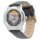 Urso-grizzly em frente a um pôr do sol com floresta ao fundo. Cuidado com amantes de ursos e fãs da vida selvagem.