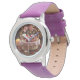 The warm tones suit a romantic leather strap wrist watch feeling.