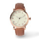 Monitorização da Vintagem Dourada com Rosa masculino com uma Precinta de Couro Marrom, mostrando algarismos árabes em negrito em rosa de ouro (#B76E79) em um fundo esbranquiçado (#F5F5DC). Este cronograma personalizável pode ser personalizado com seu monograma, nome ou imagem, fazer-o como uma escolha clássica e sofisticada para o trabalho ou eventos formais.