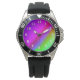 Um belo design que é brilhante e cheio de um arco-íris de cores. Doze números brancos / dígitos