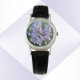 A na moda feminina assiste isso com os algarismos brancos que mostram a imagem fotográfica dos lilases roxos florescendo. Um design floral adorável! Selecione entre vários estilos de relógios.
