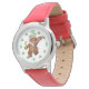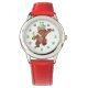 Um ursinho de pelúcia real e brincalhão vestindo uma coroa de azul, amarelo, vermelho é um relógio divertido para um garoto.