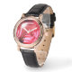 Estilo: Relógio feminino vintage em ouro rosa com pulseira de couro preta