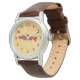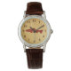 Um dom perfeito para um pescador. Uma renderização digital de uma truta, com um antigo olhar rústico, sobreposta a uma imagem antiga de fundo de papel. Você pode facilmente remover os números de horas se quiser uma aparência mais moderna.