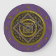Esta mandala sagital apresenta uma pedra ametista cercada pelo símbolo da placa, a constelação e o símbolo alquímico do Fogo entre o filigre e as ondas.