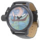 Junte-se à magia e mistério da navegação à lua com esta linda aquarela. Pintados em cores macios e pastéis, os dois viajantes intrépitos velejam em direção a um futuro mais calmo contra o fundo do céu noturno e uma enorme lua crescente. O verde, azul, marrom e prata se combinam para criar uma fotografia quente e bonita que iluminará qualquer lugar.