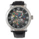 Relógio de pulso com bilhares, conselhos de dardos, chips de pôquer e cartas de jogar.