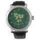 Um caule de salsa com folhas verdes. Texto personalizado. Cor de fundo personalizada.