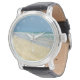 Este belo relógio à beira-mar é perfeito para decorar uma bela casa de praia. Ondas verdes claras e azuis rolam em uma bela praia sob um céu azul bonito. Eu amo a costa e relaxo na minha casa na praia. Não há nada mais pacífico que um dia ensolarado na praia.