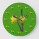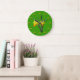 Dois daffodils amarelos e laranja são replicados várias vezes ao redor da face do relógio, uma grande imagem está situada no centro. Fundo verde.** Parte do conjunto coordenado - BKM1o.