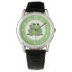 Relógio de sapo verde-bonito projetado com um adorável sapo verde no centro com verde ao redor da borda externa e os números em branco. É perfeito para quem ama sapos sorridentes e a cor verde.