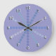 Linhas gráficas de flocos de neve dividem a face de relógio em doze seções - as extremidades de cada linha são pontas com um número branco. Há seis tons de azul diferentes para as linhas. O plano de fundo é uma cor azul-lavanda (personalize a cor do plano de fundo, se desejar).