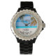 Ahh, seja lá o que for que sou vigia aposentada, a cena de praia tropical com números caídos mostra que o tempo não é importante. Apenas escolha o seu estilo de relógio.