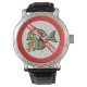 Sinal proibido por causa de peixe zangado intimidando um pequeno.