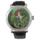 Sereia lindíssima de cabelos vermelhos no fundo do mar azul.