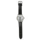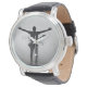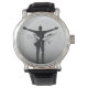 Este chaveiro circular de alumínio apresenta uma impressionante silhueta de músico em preto e branco com braços estendidos e um efeito único em estilo glitch.
