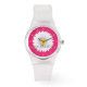 Este Bonito "Little Daisy Women's Sporty Pink Silicone eWatch Wrist Watch" foi desenhado com um padrão de margarida fofo por Mendi Vernatter chamado "Bonito Pequenas Visitas". As margaridas são brancas brilhantes com os centros amarelos do sol que iluminarão seu dia. Eu sinto que isso faria um doce, pessoal e pensativo presente para qualquer um na sua lista de presentes, incluindo você mesmo.