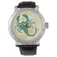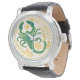 Sinal de escorpião do zodíaco em verde e branco num relógio de pulso.