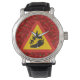 Sinal de aviso de triângulo com pimenta e silhueta de chama.