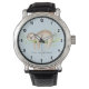 Design de aquarela; preguiça sorridente no galho da árvore, fundo azul claro. Personalizar relógio com nome ou outra mensagem especial