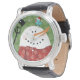 © Verique Charron / Wild Apple. Esta imagem mostra um boneco de neve de Natal vestindo um lenço verde. Ele está raptando um pássaro azul que está vestindo um chapéu de Papai Noel.