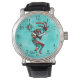 Este é um Único "Um dos tipos" do Sudoeste Kokopelli Watch! Ele apresenta um Kokopelli sudoeste em Turquoise, Laranja e Negro dançando e tocando a flauta debaixo do sol...num fundo turquesa! Design De Arte Original Pelo Artista Kerry Miller.
