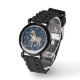Neste relógio bonito, uma zebra listrada a preto e branco passa por um cheio de estrelas brancas prateadas. A imagem é colocada sobre um fundo azul escuro. Os números de prata facilitam a leitura do relógio. Esta design parece excelente com várias cores de banda do pulso, também...olha para eles!