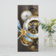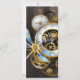 Marcações antigas com engrenagens de ouro e latão, decoradas com libélula mecânica sobre fundo castanho e listrado. Steampunk.