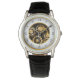 Marcações antigas com engrenagens de ouro e latão, decoradas com libélula mecânica sobre fundo castanho e listrado. Steampunk.